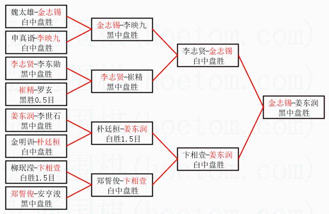 | 1.金志锡获得冠军,姜东润获得亚军。决赛比分:金志锡2:1姜东润。棋局: | ||