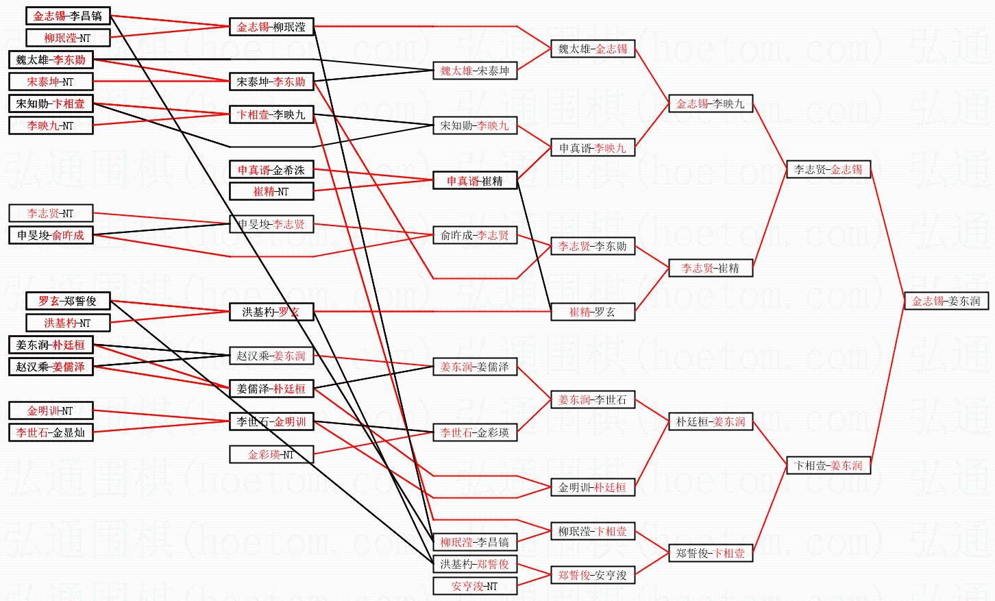 | 1.金志锡获得冠军,姜东润获得亚军。决赛比分:金志锡2:1姜东润。棋局: | ||