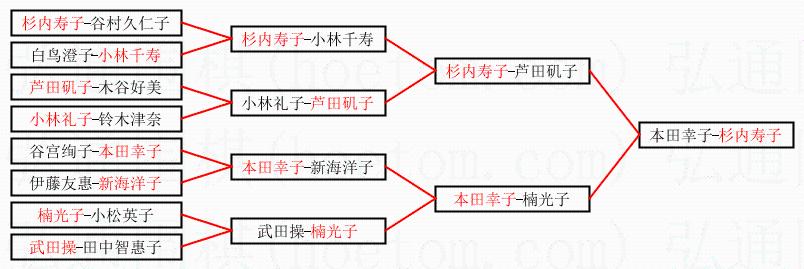 1.杉内寿子获得冠军,本田幸子获得亚军。决赛比分:杉内寿子1:0本田幸子。棋局: