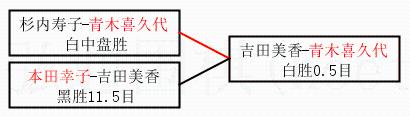 2.上半区半决赛青木喜久代获胜, 比分:青木喜久代 1:0 杉内寿子。棋局: