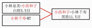 2.上半区半决赛小西和子获胜, 比分:小西和子 1:0 小林泉美。棋局: