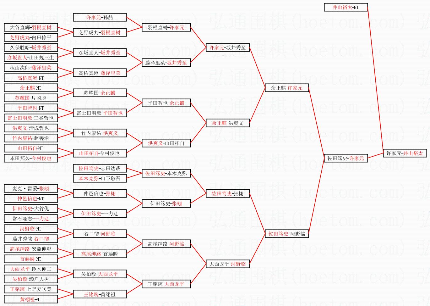 1.井山裕太获得冠军,许家元获得亚军。决赛比分:井山裕太3:2许家元。棋局: