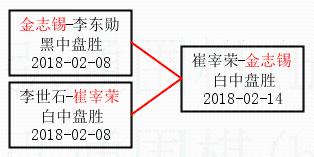 3.下半区半决赛崔宰荣获胜,比分:崔宰荣1:0李世石。棋局:
