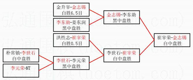 1.金志锡获得冠军,崔宰荣获得亚军。决赛比分:金志锡1:0崔宰荣。棋局: