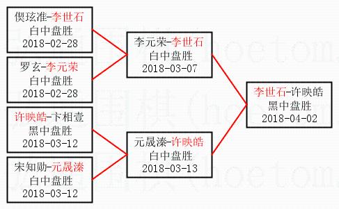2.上半区半决赛李世石获胜, 比分:李世石 1:0 李元荣。棋局: