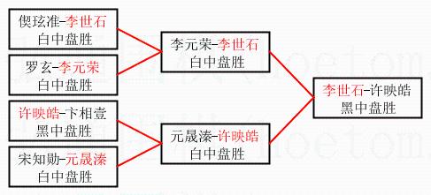 1.李世石获得冠军,许映皓获得亚军。决赛比分:李世石1:0许映皓。棋局: