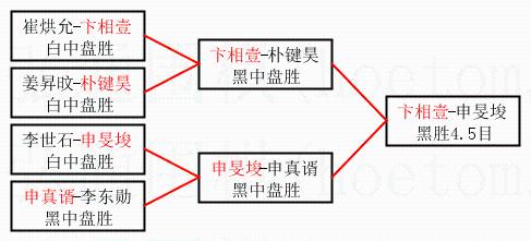 1.卞相壹获得冠军,申旻埈获得亚军。决赛比分:卞相壹1:0申旻埈。棋局: