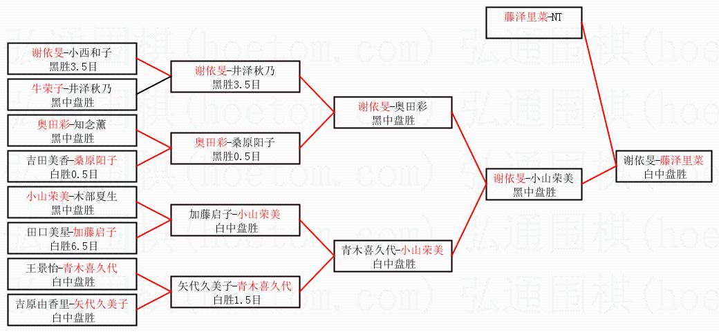 1.藤泽里菜获得冠军,谢依旻获得亚军。决赛比分:藤泽里菜2:1谢依旻。棋局: