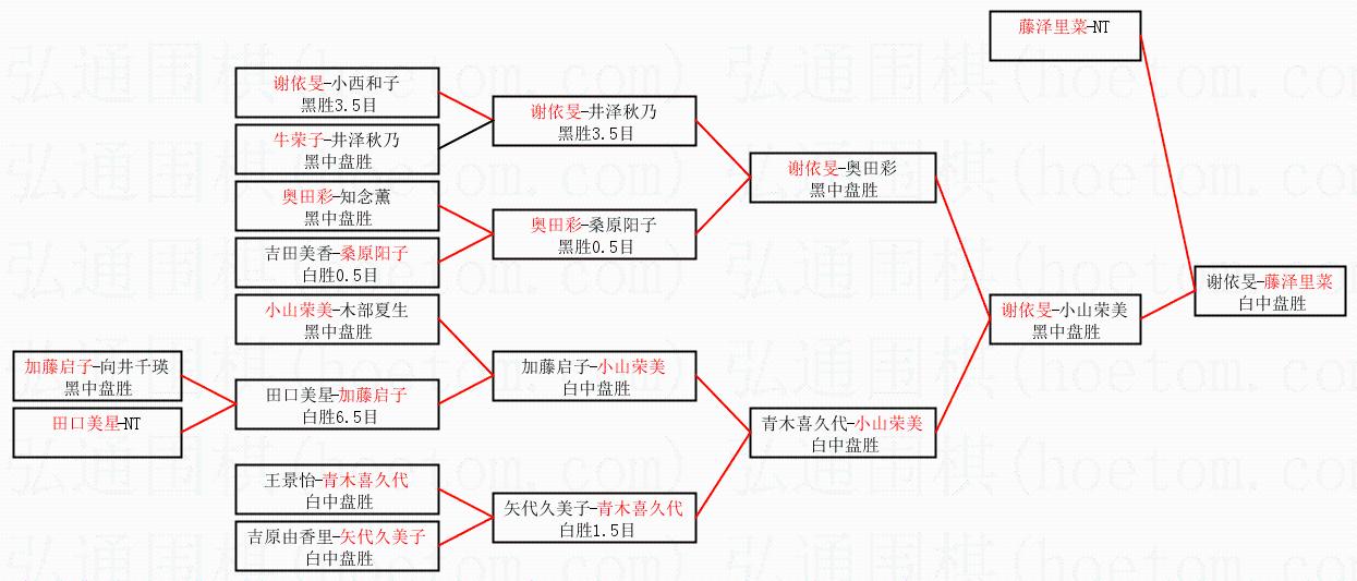 1.藤泽里菜获得冠军,谢依旻获得亚军。决赛比分:藤泽里菜2:1谢依旻。棋局: