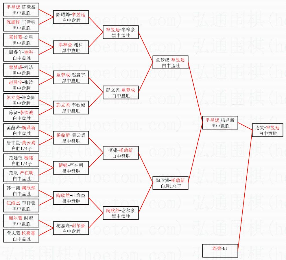 2.上半区半决赛芈昱廷获胜, 比分:芈昱廷 1:0 杨鼎新。棋局: