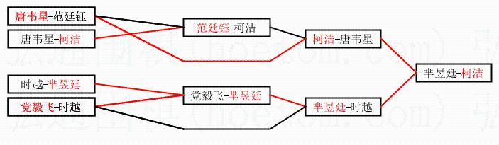 2.上半区半决赛柯洁获胜, 比分:柯洁 1:0 唐韦星。棋局: