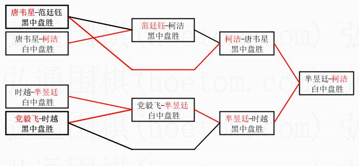 2.上半区半决赛柯洁获胜, 比分:柯洁 1:0 唐韦星。棋局: