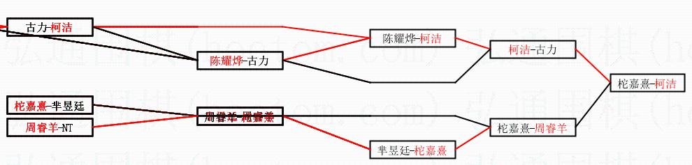 2.上半区半决赛柯洁获胜, 比分:柯洁 1:0 古力。棋局: