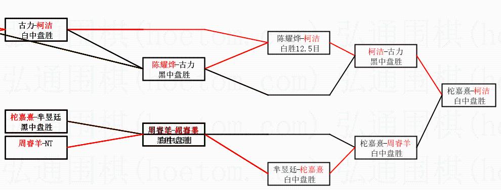 2.上半区半决赛柯洁获胜, 比分:柯洁 1:0 古力。棋局: