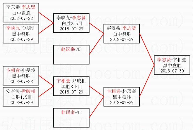 1.李志贤获得冠军,卞相壹获得亚军。决赛比分:李志贤1:0卞相壹。棋局: