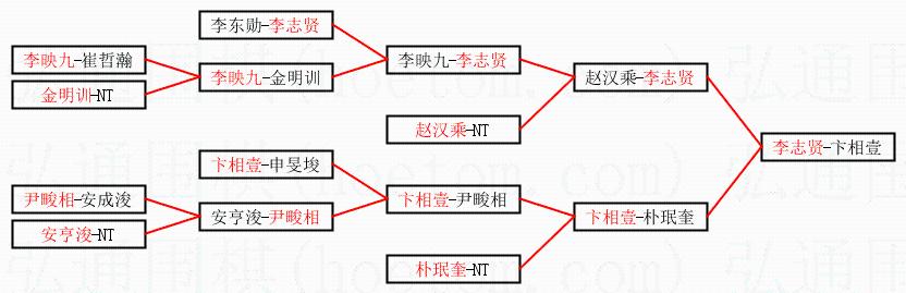 1.李志贤获得冠军,卞相壹获得亚军。决赛比分:李志贤1:0卞相壹。棋局: