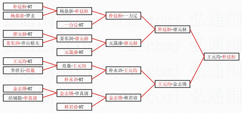 1.朴廷桓获得冠军,王元均获得亚军。决赛比分:朴廷桓1:0王元均。棋局: