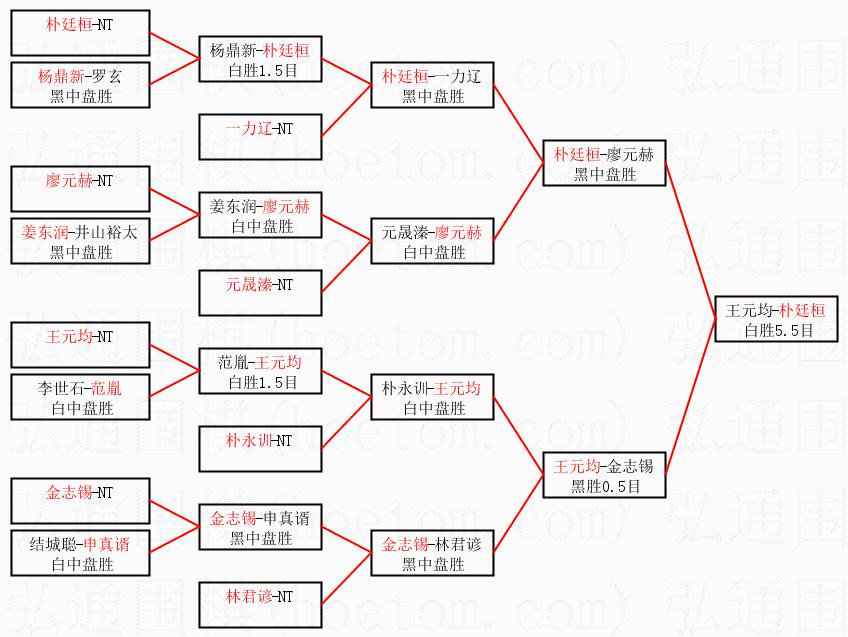 2.上半区半决赛朴廷桓获胜, 比分:朴廷桓 1:0 廖元赫。棋局: