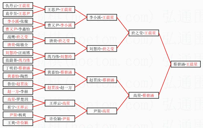 | 3.下半区半决赛蔡碧涵获胜,比分:蔡碧涵1:0高星。棋局: | ||