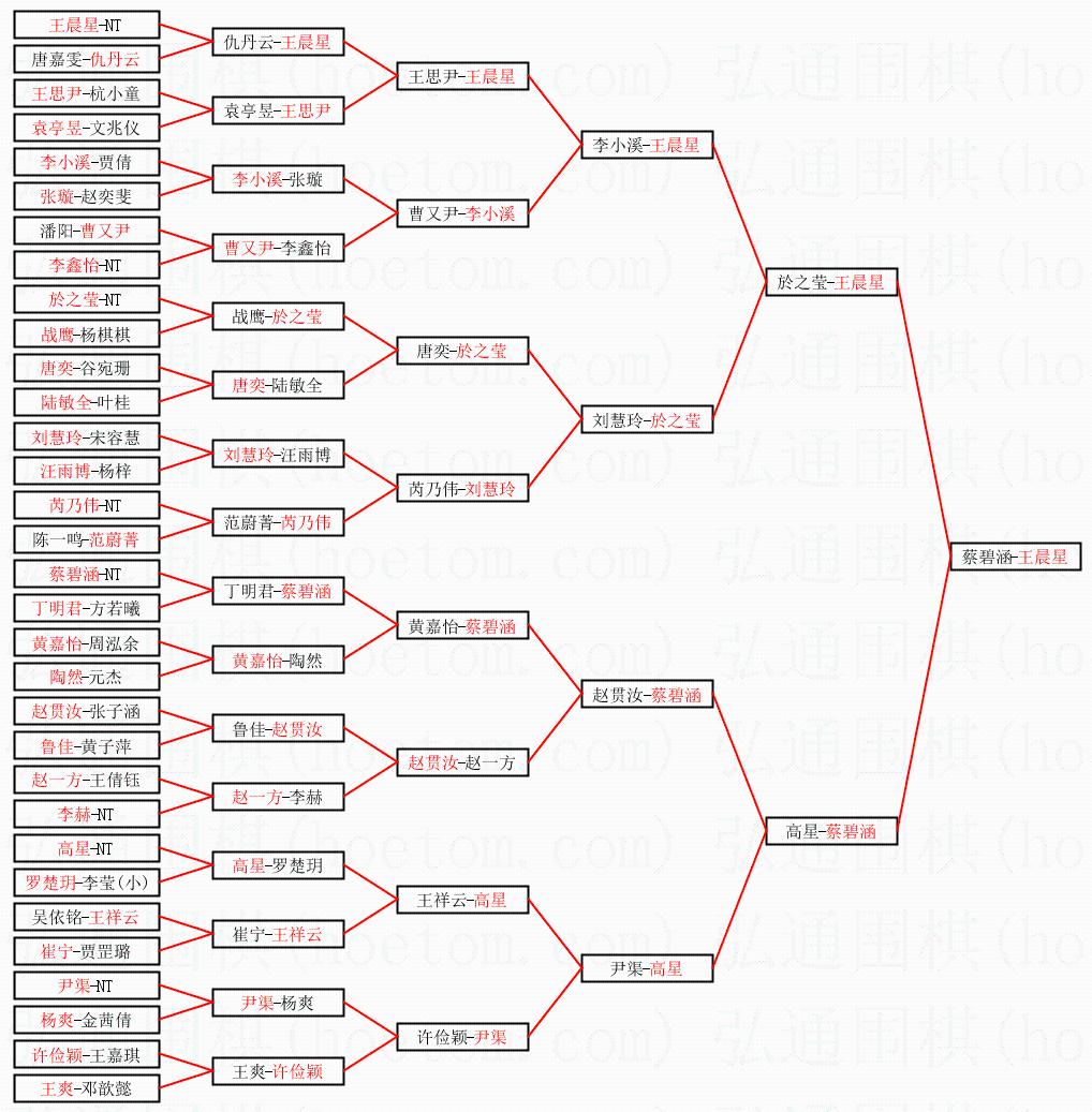 | 1.王晨星获得冠军,蔡碧涵获得亚军。决赛比分:王晨星2:0蔡碧涵。棋局: | ||