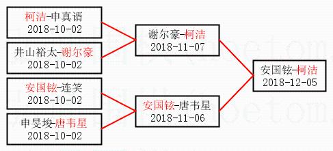 | 1.柯洁获得冠军,安国铉获得亚军。决赛比分:柯洁2:1安国铉。棋局: | ||
