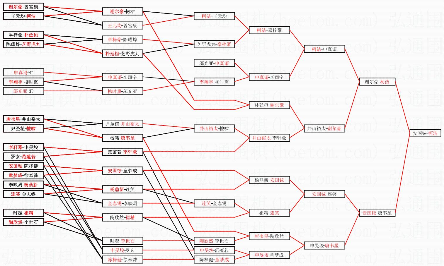 | 1.柯洁获得冠军,安国铉获得亚军。决赛比分:柯洁2:1安国铉。棋局: | ||