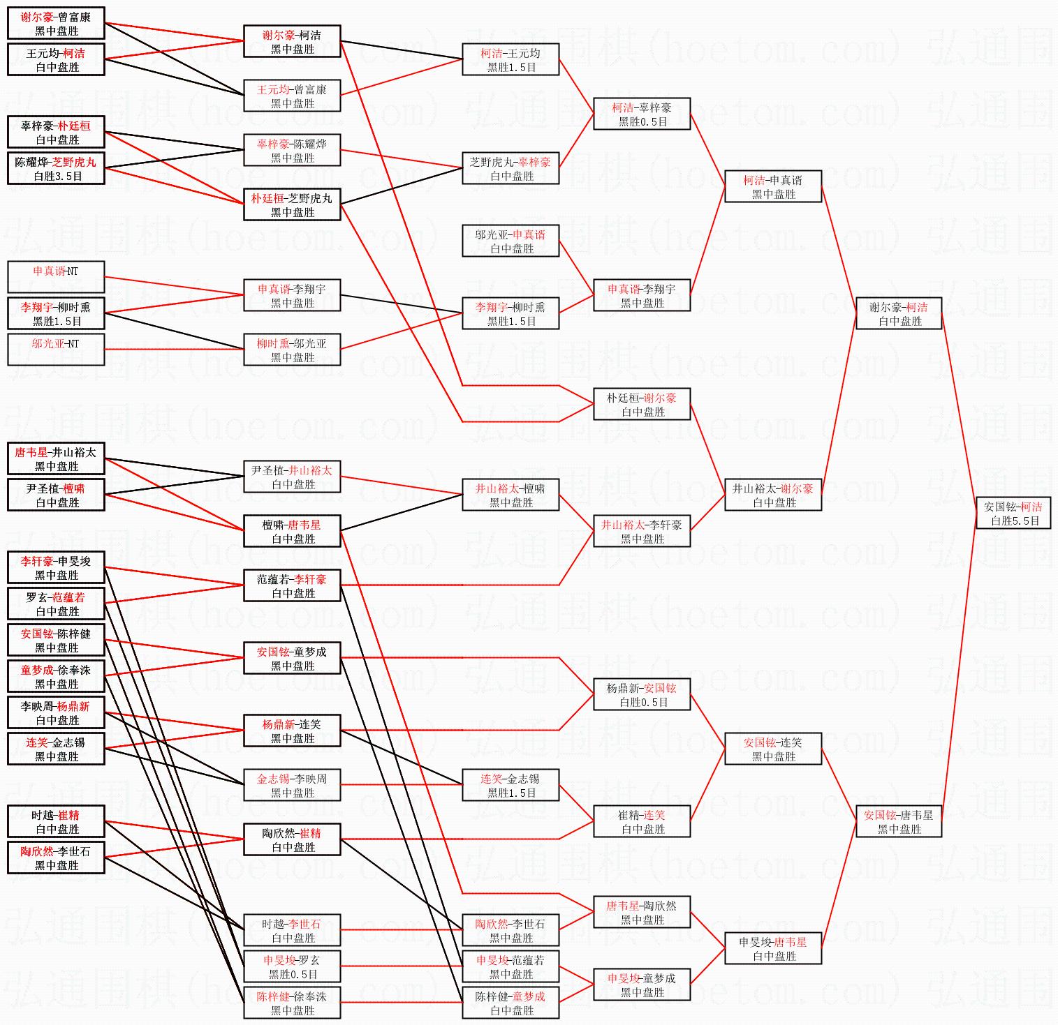 | 1.柯洁获得冠军,安国铉获得亚军。决赛比分:柯洁2:1安国铉。棋局: | ||