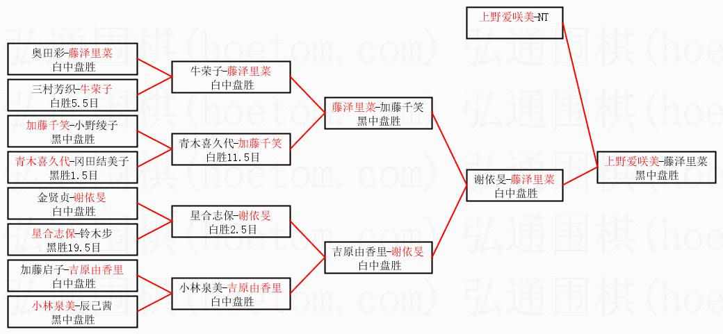 1.上野爱咲美获得冠军,藤泽里菜获得亚军。决赛比分:上野爱咲美2:0藤泽里菜。棋局: