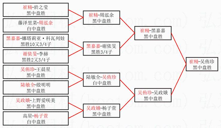 3.下半区半决赛吴侑珍获胜,比分:吴侑珍1:0吴政娥。棋局: