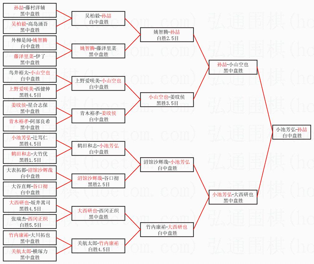 | 1.孙喆获得冠军,小池芳弘获得亚军。决赛比分:孙喆2:0小池芳弘。棋局: | ||