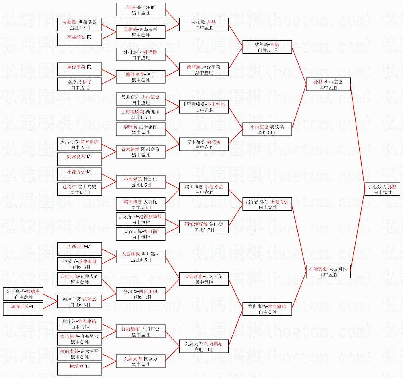 | 1.孙喆获得冠军,小池芳弘获得亚军。决赛比分:孙喆2:0小池芳弘。棋局: | ||