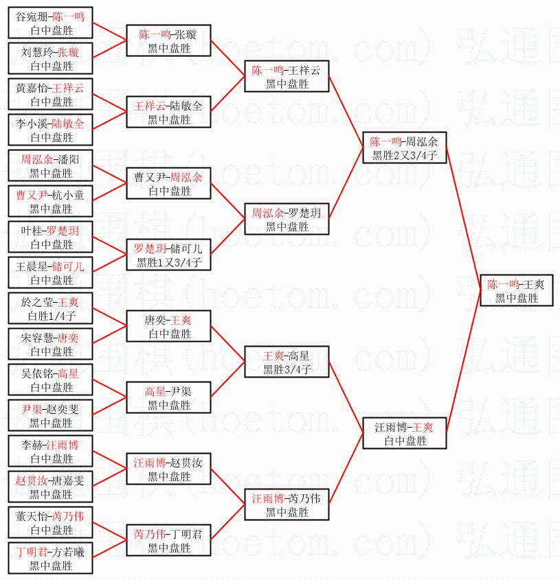 1.陈一鸣获得冠军,王爽获得亚军。决赛比分:陈一鸣2:0王爽。棋局: