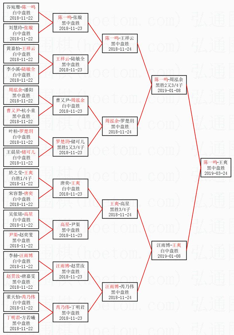 1.陈一鸣获得冠军,王爽获得亚军。决赛比分:陈一鸣2:0王爽。棋局: