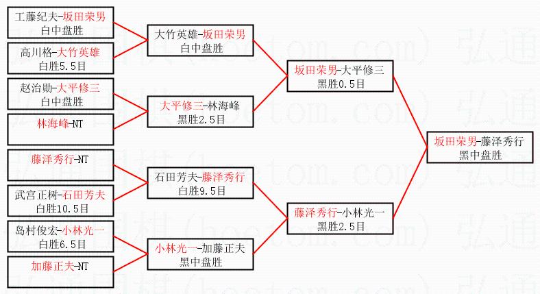 1.坂田荣男获得冠军,藤泽秀行获得亚军。决赛比分:坂田荣男1:0藤泽秀行。棋局: