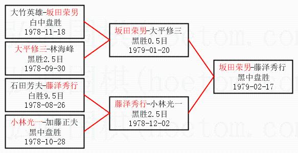 1.坂田荣男获得冠军,藤泽秀行获得亚军。决赛比分:坂田荣男1:0藤泽秀行。棋局: