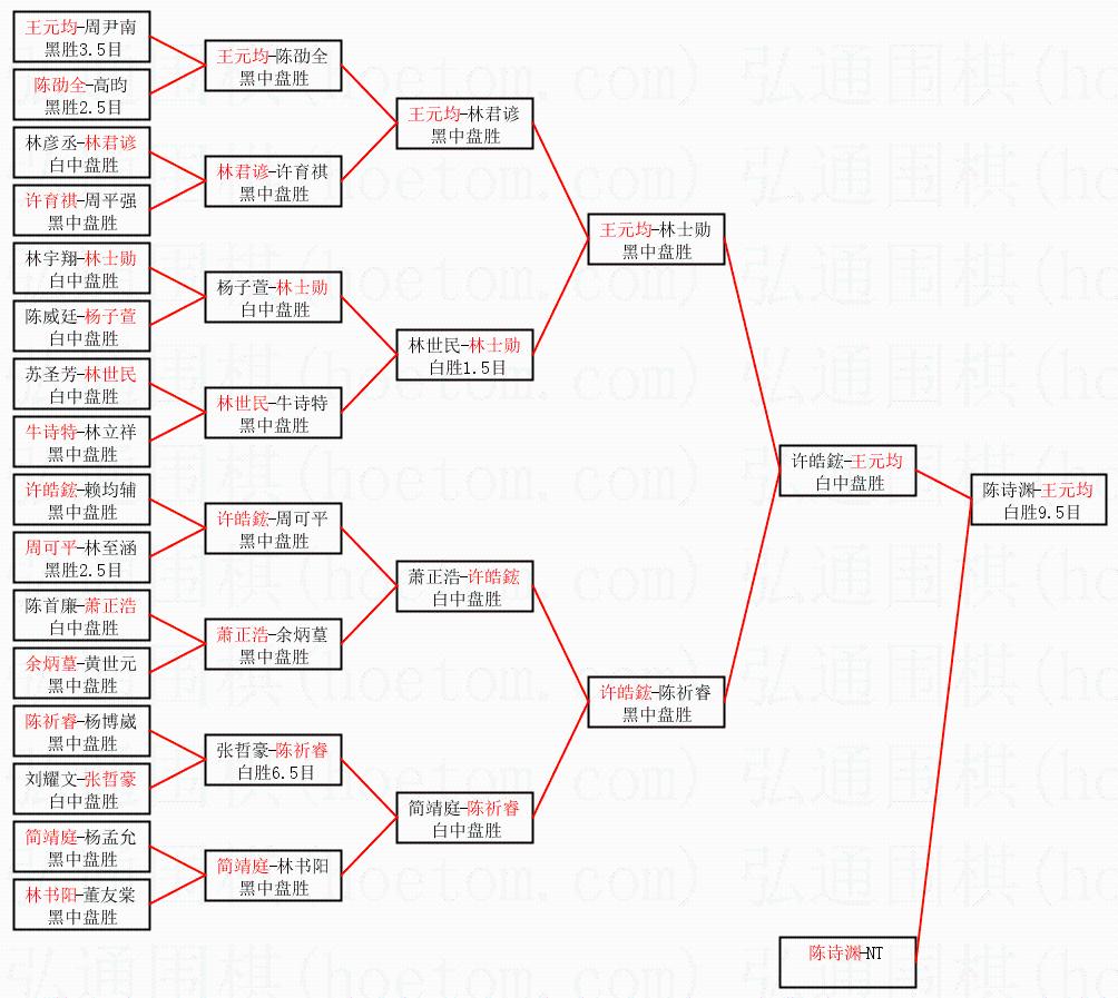 1.王元均获得冠军,陈诗渊获得亚军。决赛比分:王元均3:0陈诗渊。棋局: