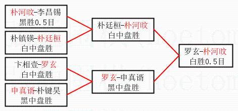 2.上半区半决赛朴河旼获胜, 比分:朴河旼 1:0 朴廷桓。棋局: