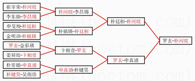 1.朴河旼获得冠军,罗玄获得亚军。决赛比分:朴河旼2:0罗玄。棋局: