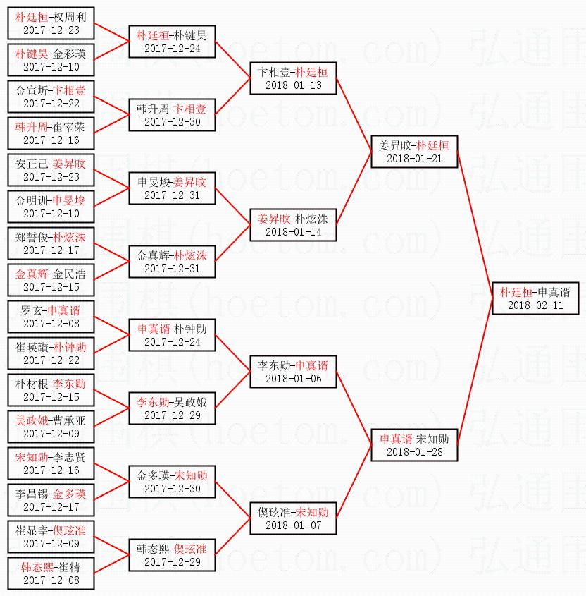 | 1.朴廷桓获得冠军,申真谞获得亚军。决赛比分:朴廷桓2:1申真谞。棋局: | ||