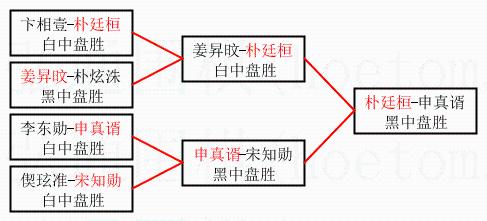 2.上半区半决赛朴廷桓获胜, 比分:朴廷桓 1:0 姜昇旼。棋局: