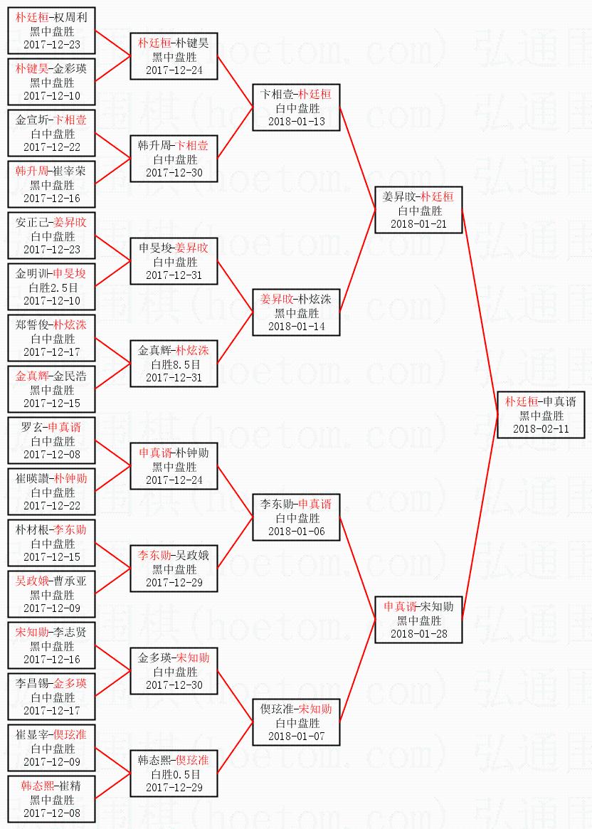 2.上半区半决赛朴廷桓获胜, 比分:朴廷桓 1:0 姜昇旼。棋局: