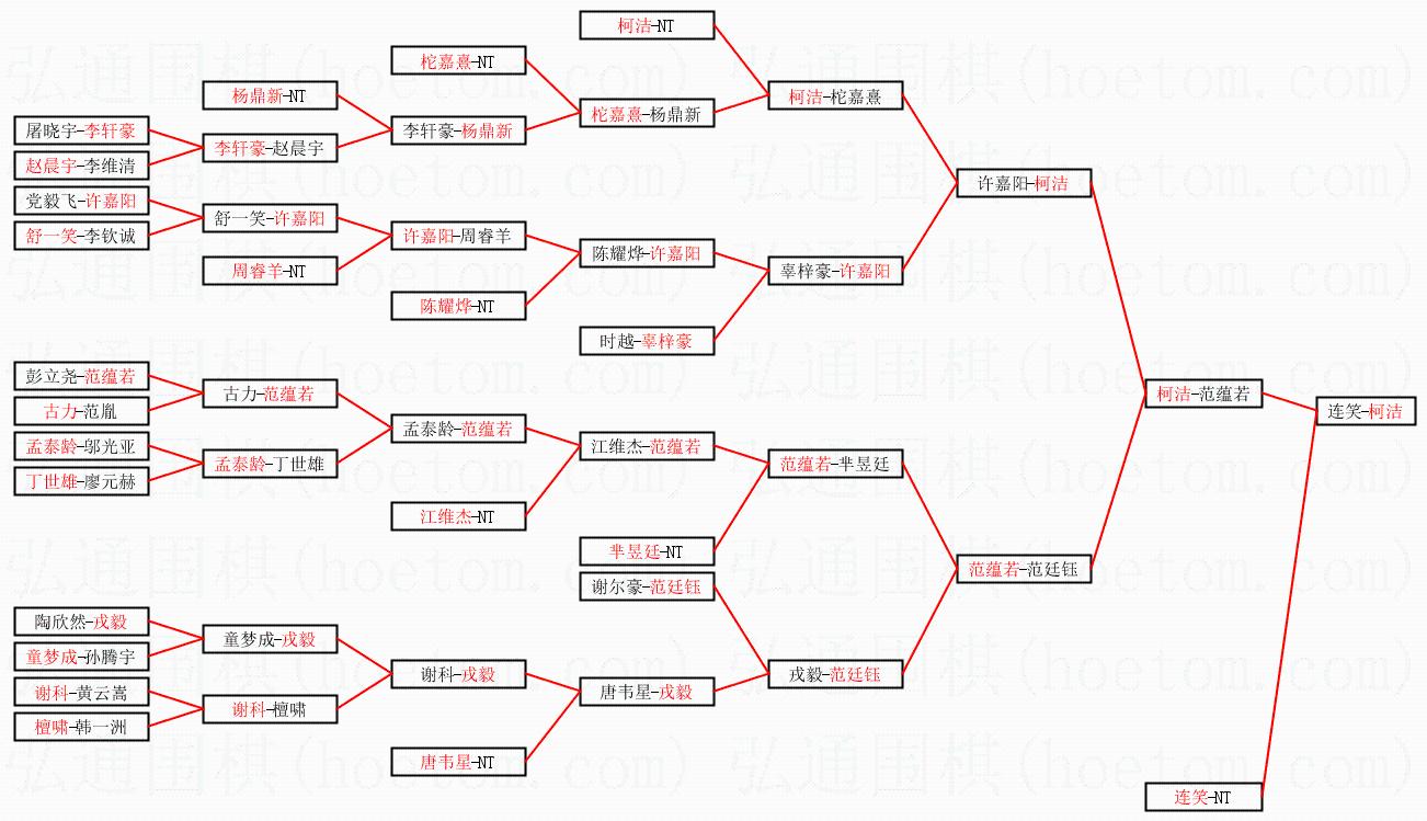 1.柯洁获得冠军,连笑获得亚军。决赛比分:柯洁2:1连笑。棋局:
