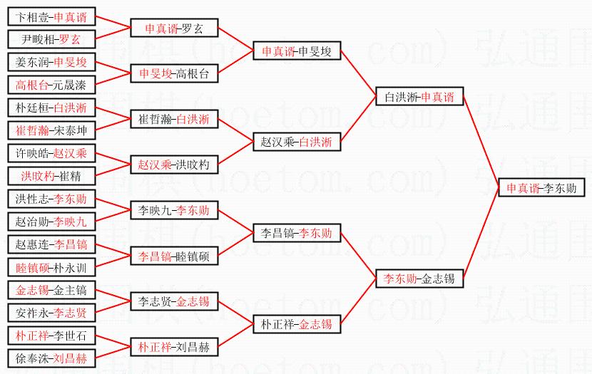 1.申真谞获得冠军,李东勋获得亚军。决赛比分:申真谞2:1李东勋。棋局:
