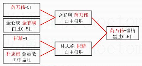 2.上半区半决赛芮乃伟获胜, 比分:芮乃伟 1:0 金彩瑛。棋局: