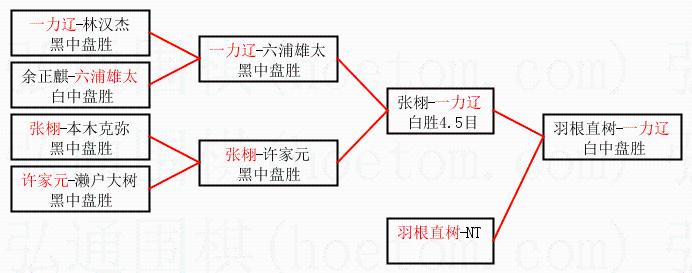 1.一力辽获得冠军,羽根直树获得亚军。决赛比分:一力辽3:0羽根直树。棋局:
