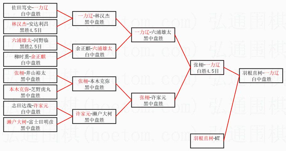 1.一力辽获得冠军,羽根直树获得亚军。决赛比分:一力辽3:0羽根直树。棋局:
