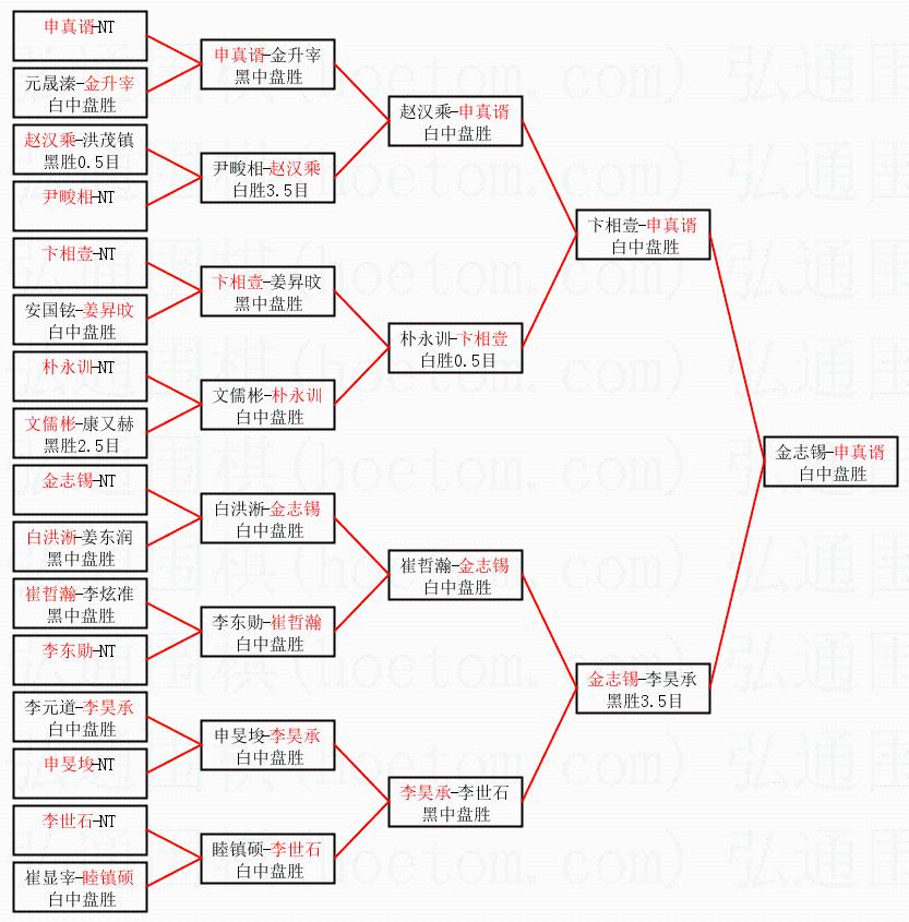 | 1.申真谞获得冠军,金志锡获得亚军。决赛比分:申真谞3:0金志锡。棋局: | ||