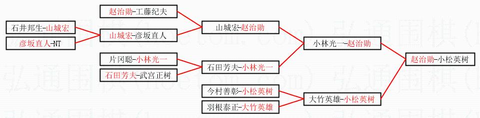 2.上半区半决赛赵治勋获胜, 比分:赵治勋 1:0 小林光一。棋局: