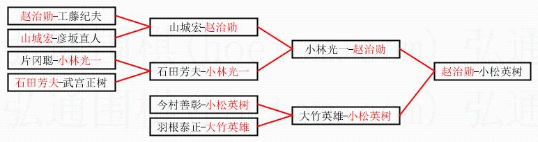 2.上半区半决赛赵治勋获胜, 比分:赵治勋 1:0 小林光一。棋局: