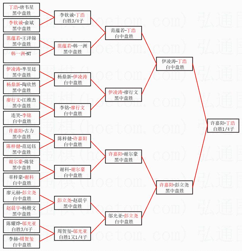 2.上半区半决赛丁浩获胜, 比分:丁浩 1:0 伊凌涛。棋局: